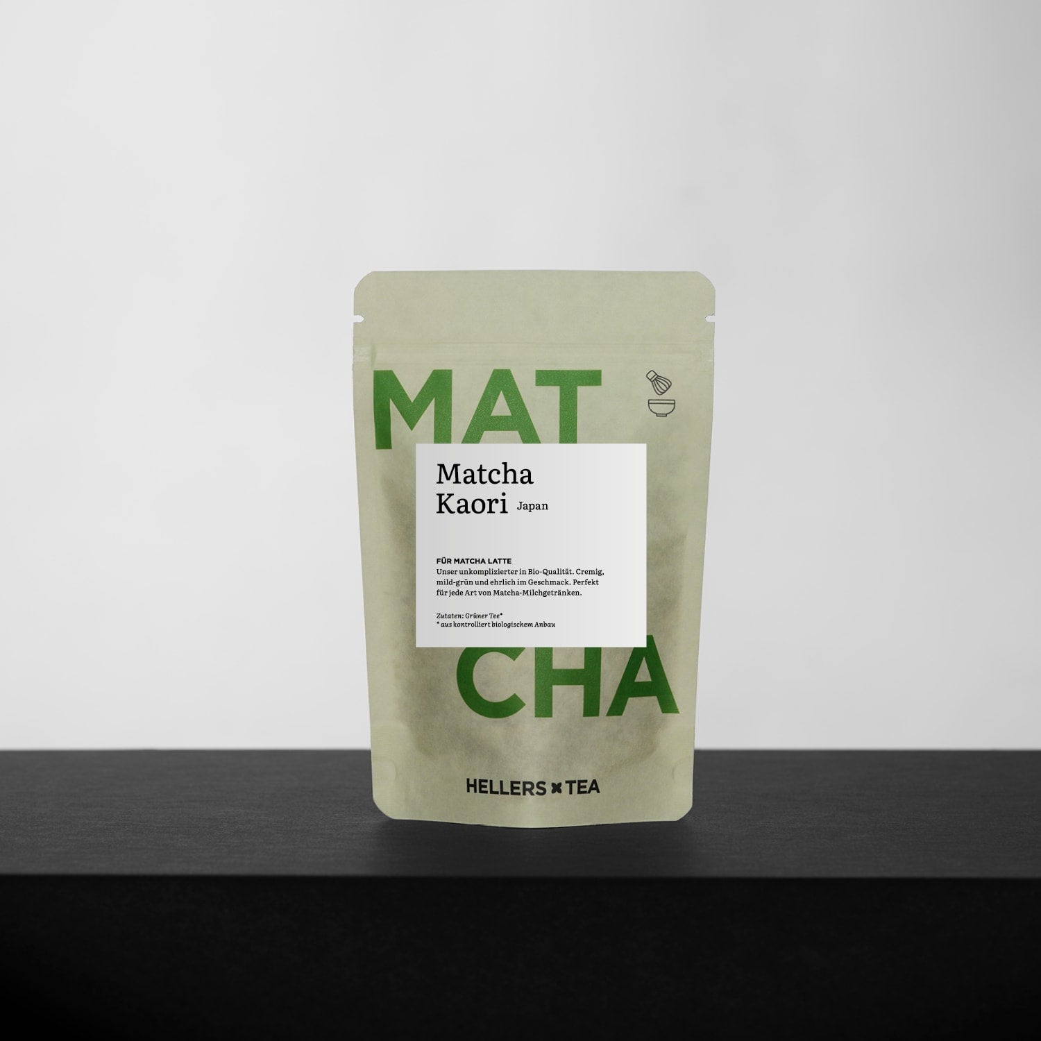The JAPAN KAORI from HELLERSTEA° comes from the Hattori Farm near Kikugawa City - Shizuoka, Japan. Because matcha is not a tea infusion, but is whipped as a natural powder in the matcha bowl with a bamboo whisk, the proportion of natural ingredients is much higher than in normal green tea.