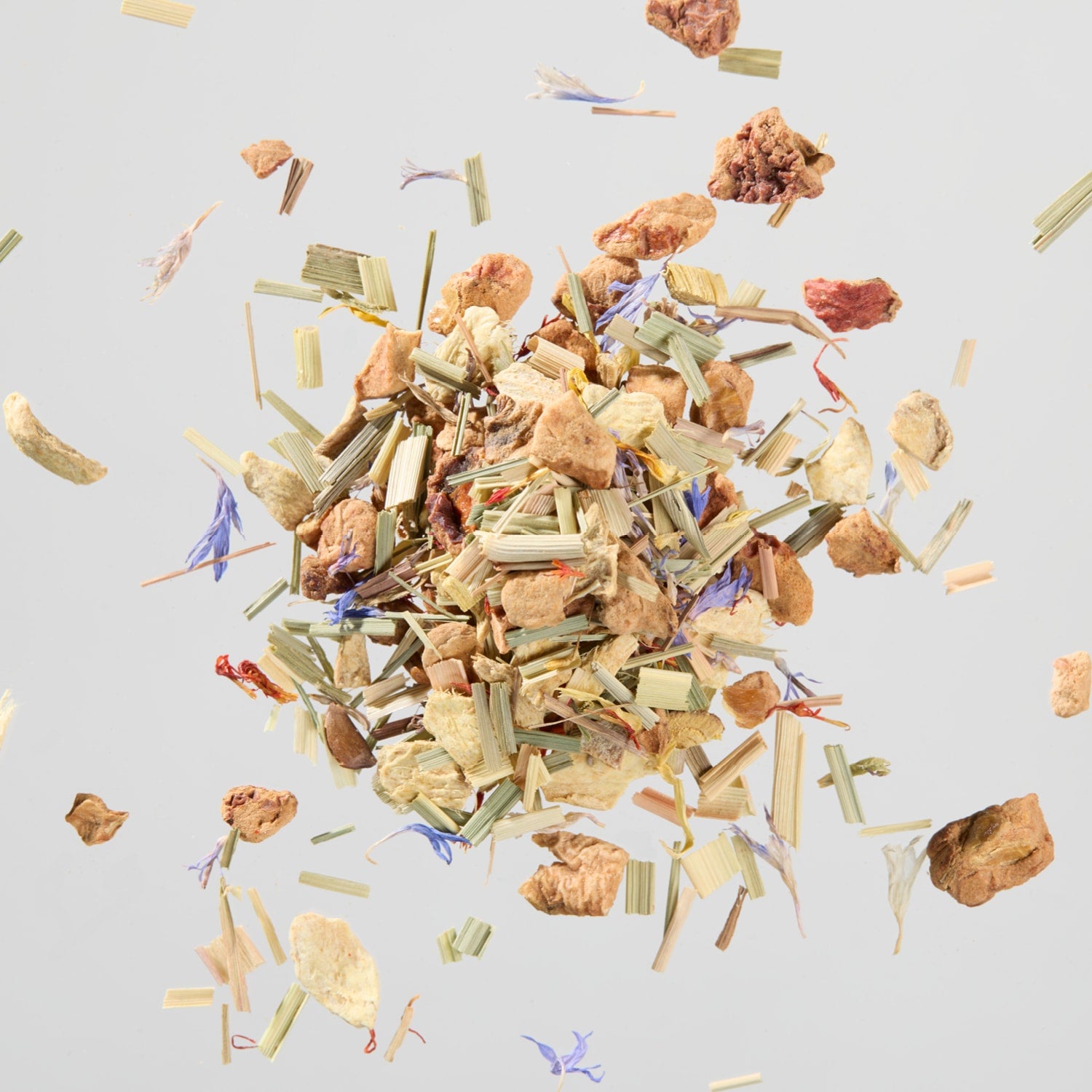 Zutaten: GINGER*, APPLE PIECES*, LEMONGRASS*, LICORICE*, MARIGOLD PETALS*, CORNFLOWER PETALS*, SAFLOWER PETALS