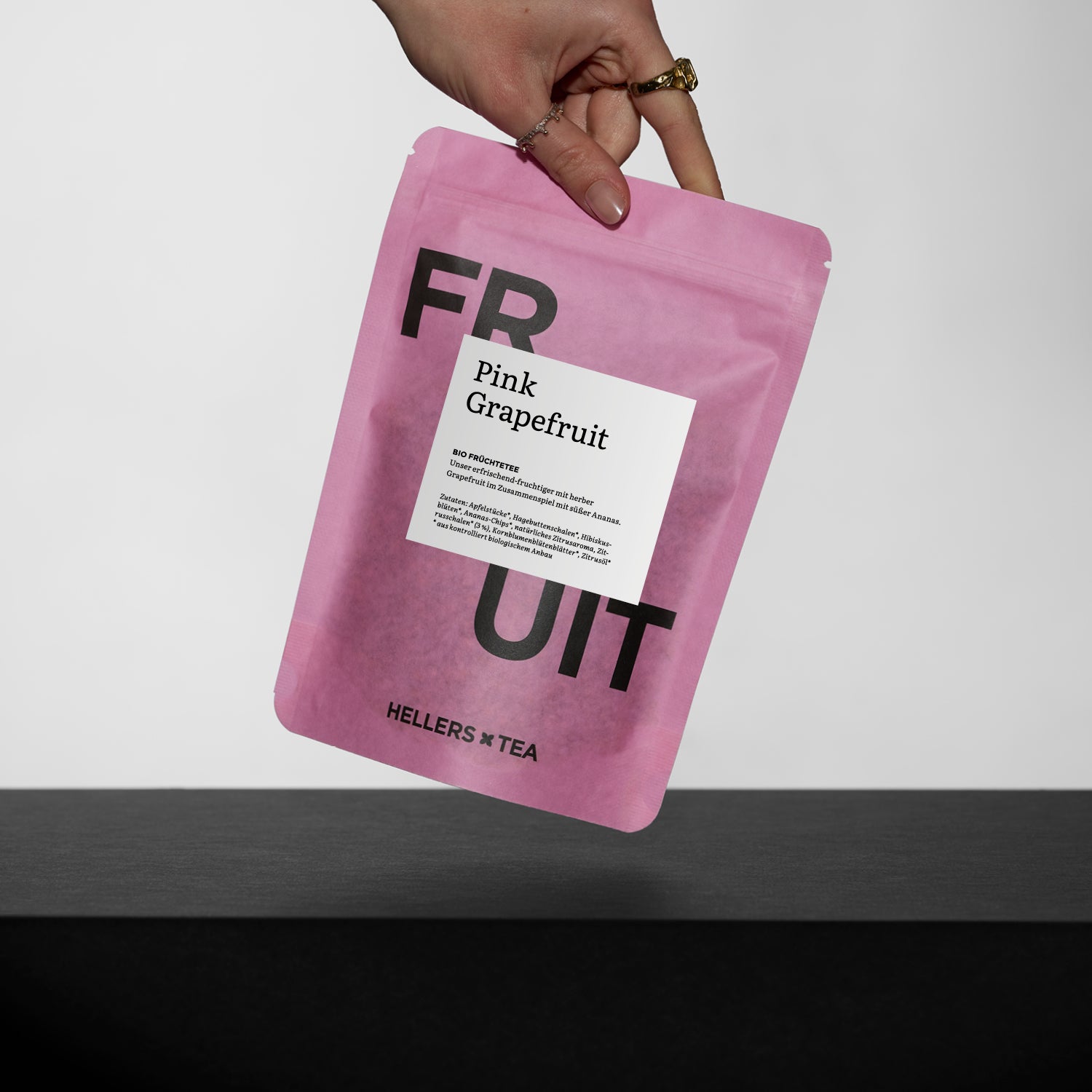 The PINK GRAPEFRUIT TEA from HELLERSTEA° is a fruity explosion of tart-sweet grapefruit. The ripe fruits from controlled organic cultivation have stored the many hours of sunshine and make the hearts of fruit tea fans beat faster.HERBS SWEET GRAPEFRUIT TEA